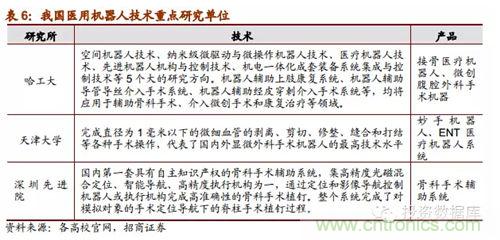 隨著醫用機器人技術的不斷突破和發展,從2005年開始我國有一批重點高校科研醫院單位及研究所在研究醫用機器人系統并取得了一些小成就,比如哈工大的微創腹腔外科手術機器已經成功被專家驗收,天津大學的妙手機器人在今年3月份開始臨床使用;同時,隨著醫用機器人商業化市場化的可能性愈發明晰,已經有部分企業正在生產或者打算進軍醫用機器人細分行業,其中就包括機器人領先企業的博實股份和新松機器人。