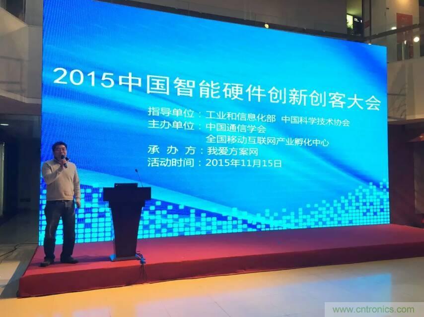 11月15日下午,2015中國智能硬件創新創客大會隆重舉行,我愛方案網承辦策劃本次大會,來自電子科技大學,中科院,百度,易觀研究院,我愛方案網和科通芯城的創新代表從不同層面探討智能硬件的創新。我愛方案網副總王勤主持本次大會。