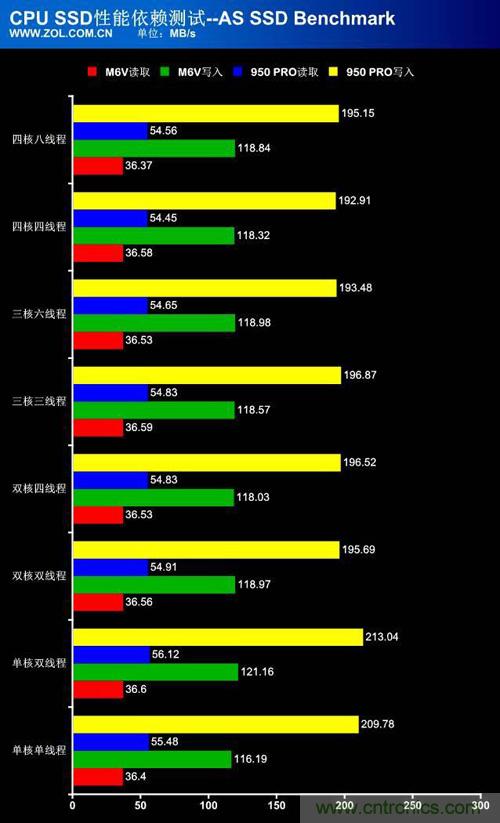 CPU對SSD 4K讀寫性能的影響,一方面因為目前的硬件設計和操作系統無法很好的利用CPU的多線程特性來發掘出SSD的潛能,另一方面4K小文件的讀寫涉及到龐大的數據取址、讀取和寫入的操作,對于CPU自然提出了更高的要求,即使是SSD也只是提供了更快的數據通道形式,但是數據任務量并不會改變,所以未來要想獲得更好的數據存儲體驗,除了不斷提升SSD性能,也請不要忽視了CPU的性能以及多線程的開發。
