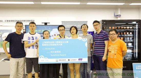 云漢芯城社區(qū)運(yùn)營總監(jiān)顧天任(右二)為參賽隊伍頒發(fā)陽光普照獎