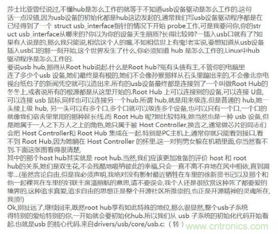 所有的usb設備最終都是連接到Root Hub上,或者說所有的根源都是從這里開始的。Root Hub 上可以連接別的設備,可以連接 U盤,可以連接 usb 鼠標,同樣也可以連接另一個hub.所謂 hub,就是用來級連。