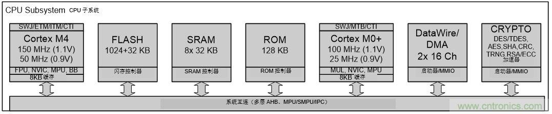 多核 MCU 可帶來許多其他益處。例如,它可以集成足夠的資源使 CPU 能夠并行處理密集型任務,從而充分發揮多任務處理的效率。這也使開發人員可以有效地將系統事件分配給特定的內核,從而達到功耗和性能目標。再比如,在雙核可穿戴設計中,可以將需要較少 CPU 干預的周期性功能(例如無線廣播和觸摸感應)分配給一個內核。其他“頻繁接觸”的功能,如需要 CPU 頻繁干預的傳感器融合等,可以分配給另一個內核。當在系統中運行多個應用程序時,這種分區縮短了延遲時間。通過整合協議棧和程序存儲器的集成還可以提高效率。