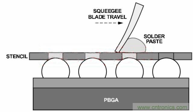 在將替換PBGA器件安裝到電路板上之前應涂敷焊膏,目的是取代最初裝配電路板時涂敷的焊膏,從而保證PBGA焊接接頭的可靠性。給每個焊球涂敷的焊膏量必須一致,以免在電路板上安裝PBGA時發生不共面問題。