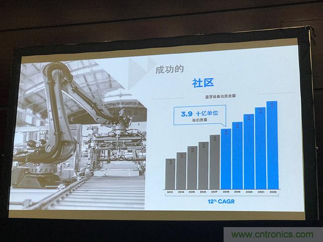 在汽車領域,藍牙將成為大部分新車的標配。2018年,所有新車中高達86%的新車將具備藍牙連接功能,藍牙無線傳感器系統能夠將偵測的信息和警報傳輸到服務管理解決方案,從而簡化商業車隊及消費車輛的維護。預計到2022年,車用設備出貨量將增長4.5倍,與智能手機融為一體的職能車鑰匙將通過藍牙連接實現自動鎖定和解鎖檢測,自定義座椅設定,分享虛擬鑰匙的便利功能。