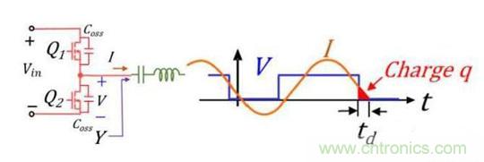 這是因為如果電流I是滯后與電壓V的,這樣在Q1開啟之前電流I為負值就會charge Q2的Coss,同時discharge Q1的Coss,讓V到Vin,這樣Q1就實現ZVS turn on了。Q2開啟之前,電流I為正,也會discharge Q2的Coss,和charge Q1的Coss,讓V到0,這樣Q2就實現ZVS了。