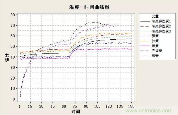 可以看出,隨著電流的增加,發熱量迅速增大,溫度升高越來越快。這也是大電流接觸體多采用插針內置漲環、插孔收口端外套彈簧(彈簧箍結構)、冠簧等結構,避免銅材受熱產生應力松馳;