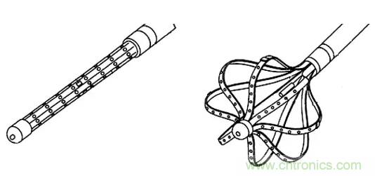 一種電生理學導管,在心臟中可展開和伸縮,具有64個電極。
