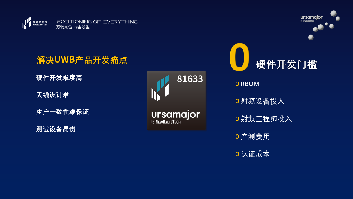 作為一家專注于無線通信技術(shù)芯片領(lǐng)域的先驅(qū)企業(yè),紐瑞芯始終致力于提供最優(yōu)質(zhì)、最高效的產(chǎn)品和解決方案。紐瑞芯在與合作伙伴密切合作的過程中,發(fā)現(xiàn)市場對UWB技術(shù)性能提升越來越急迫,且其應(yīng)用的范圍正在不斷延伸,場景越發(fā)豐富。這次發(fā)布的NRT ursamajor 2.0,是紐瑞芯深度挖掘了這些需求痛點(diǎn),對現(xiàn)有UWB技術(shù)產(chǎn)品進(jìn)行優(yōu)化和升級后的成果,旨在提供更加精確、穩(wěn)定、安全的定位通信服務(wù)。——Unleash the power of UWB!
