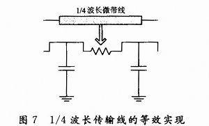 這是一個180°定向耦合器,也稱為rat-race網絡,如圖5所示。物理上可以通過微帶實現,如圖6所示。然而對于第1部分提出的710 MHz天線,由于波長太長,這樣的耦合器在移動設備上無法實現。為了實現去耦合,可以用貼片電感和電容做出成等效傳輸線,從而用電感和電容做成一個耦合網絡,這就可以顯著降低耦合器占用的體積。如圖7所示,一個等效1/4波長傳輸線可以用兩個電容和一個電感來等效代替。電容和電感的計算公式為:
