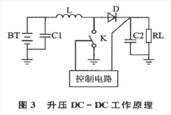 在以上介紹的DC/DC轉換電路中,采用的是DC/DC升壓轉換器件,升壓型DC/DC轉換器的電路結構如圖3所示。