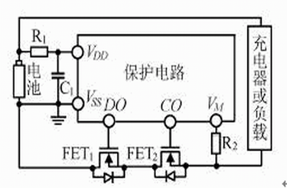 鋰離子電池保護電路為了實現其基本功能,首先需要檢測異常現象。過充電和過放電檢測是將電池電壓進行分壓(采樣)后與基準電壓比較實現的;而對于過流檢測,保護芯片首先將充放電過程中的電流轉化為在功率管FET1、FET2上的電壓,然后通過VM與基準電壓比較完成,放電過流檢測的是正電壓,充電過流檢測的是負電壓。