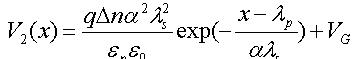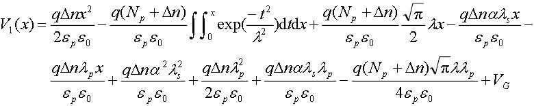 式中 當邊界條件在∞→x時,。求解得到多晶硅柵上的電場及電勢分布為: