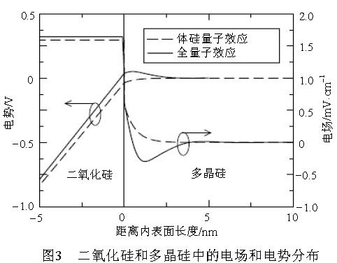圖1 量子效應下載流子和經典情況 下多晶硅中載流子的分布對比