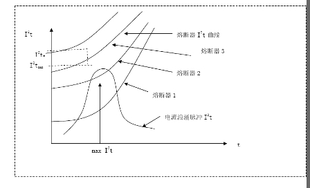 在這里,我們重點分析第(1)點。實際選用的熔斷器的I^{2}t_{F}值,即相應于電流浪涌I2tmax最大值處的熔斷器的I2t值, 應該滿足: