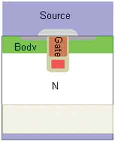 由于二極管具有負溫度系數,并聯工作不太容易,在一個晶圓上分成兩個區做MOSFET和肖特基二極管,那么肖特基二極管在與MOSFET交界的區域,溫度高,離MOSFET較遠的區域,溫度低。當肖特基二極管溫度高時,流過更大的電流,所以與MOSFET交界的肖特基二極管區域由于溫度高,流過的電流更大,溫度進一步上升,就可能產生局部的損壞。目前,通常將特基二極管的單元做到MOSFET的單元里面,這樣就可能得到更好的熱平衡,提高器件的可靠性。