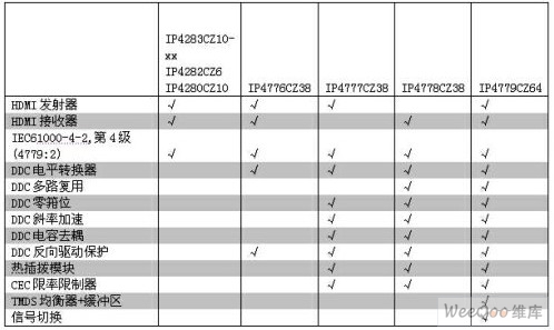 下表列出了恩智浦的主要HDMI接口調(diào)節(jié)和ESD保護設(shè)備的重要功能。