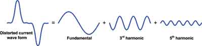 大型辦公室和工業(yè)樓宇運(yùn)行著大量的非線性負(fù)載,如PC、激光打印機(jī)、固態(tài)加熱器控制、熒光燈管、不間斷電源以及變速驅(qū)動(dòng)器。與白熾燈的線性負(fù)載相比,其相位電流為一個(gè)正弦波形,從而帶來巨大諧波含量(見圖2)。