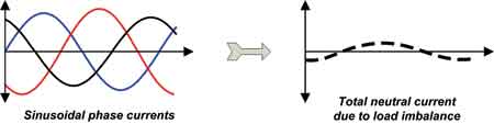 所有中性導(dǎo)線都并入配電板中的一個(gè)大直徑中性導(dǎo)線,就像一個(gè)變壓器一樣(見圖5)。在線性負(fù)載情況下,多相位系統(tǒng)的中性電流在一定程度上相互抵消。由于負(fù)載不平衡(見圖3),只有總中性電流的一小部分保留了下來。