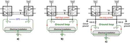 就僅限于一個(gè)本地電源供電的電路而言,GPD不會(huì)導(dǎo)致什么問題。在設(shè)計(jì)兩個(gè)遠(yuǎn)程電路間的通信鏈路時(shí)(即現(xiàn)場總線-收發(fā)器站),GPD就變得引人關(guān)注了,這兩個(gè)遠(yuǎn)程電路間的通信鏈路由不同的電源供電。