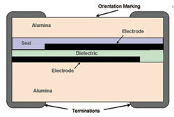 就在不久之前,大多數微波電容器還都基于多層陶瓷燒制技術。在生產過程中,多層高導電性的金屬合金電極層和低損耗的陶瓷絕緣層交錯排列,從而得到所需要的電容值。然后,將合成的疊層進行高溫燒制,將其燒結成單片結構。這一工藝目前仍然很好地滿足大容量射頻電容器以及大功率電容器的需要。