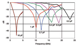 我們必須認識到薄膜電容器用作帶阻濾波器是具有局限性的。因為薄膜電容器通常只能提供小電容值,所以它們局限于頻率相對較高的帶阻濾波器設計。如果涉及到低頻設計,必須采用其他的濾波器方法,通常是使用高Q值的多層射頻電容器。