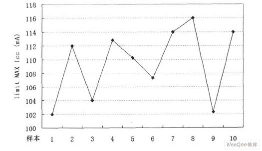 將以上設(shè)計的限流電路嵌入某穩(wěn)壓芯片(內(nèi)含電荷泵電路)中,實現(xiàn)流片量產(chǎn)(CMOS工藝)。當VDD=3V時,通過測量量產(chǎn)芯片得到輸出電流極限數(shù)據(jù)。統(tǒng)計如圖5所示,可知當輸出電流處于100~120mA范圍內(nèi)時,限流電路開始工作,關(guān)閉系統(tǒng)即保護LDO安全。由此可見,本設(shè)計電路結(jié)構(gòu)簡單,功能可靠,可廣泛應(yīng)用于電源芯片中。