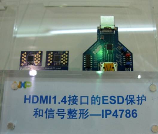 HDM11.4接口允許同時傳送兩路1080p全高清視頻信號,為以后的3D全高清顯示奠定了基礎。IP4786是第一個支持HDMI1.4的ESD保護的小型化封裝IC,其最大的亮點是采用了最新的濾波技術,一般情況下,HDMI在100歐時阻抗在±15,采用新的濾波技術后,在100歐時阻抗在±5~8之間,將為設計工程師在設計3D動畫這類高速信號傳輸時提供了很大的空間。據(jù)高先生透露,目前國內(nèi)已經(jīng)有客戶在用這款產(chǎn)品做Design。