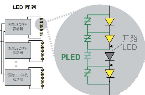 PLED系列產品是一種電壓觸發開關導通元件,使用時作為旁路與LED燈串接在電路中。當LED開路時,電壓全部降落到PLED上。