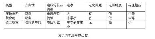 表1總結(jié)了前面談及的三類(lèi)TVS器件的基本特性。選擇恰當(dāng)?shù)谋Wo(hù)器件應(yīng)考慮多種因素,其中關(guān)鍵的決定因素就是被保護(hù)電路的特性。