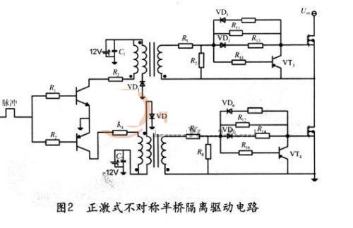 1.2 正激式不對稱半橋隔離驅(qū)動電路