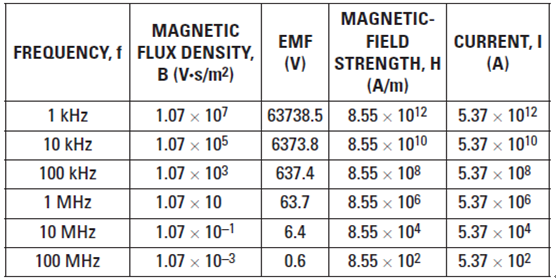 EMF 為以伏特為單位的電勢,f 為磁場頻率,而 A 為以平方米 (m2) 為單位的環路面積。