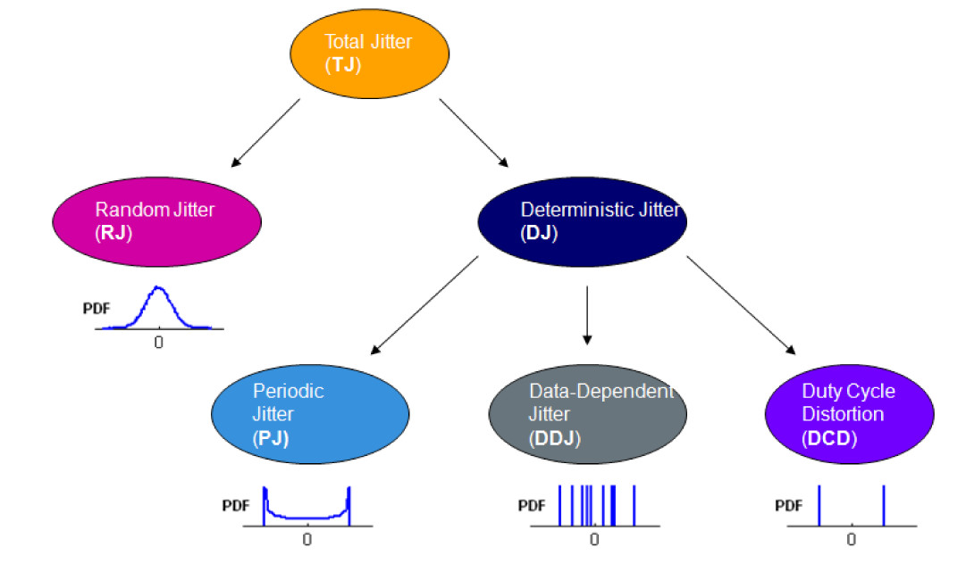 所有采用電壓跳變表示定時(shí)信息的電氣系統(tǒng)都有定時(shí)抖動(dòng)。在歷史上,電氣系統(tǒng)通過采用相對(duì)較低的信令速率來減緩定時(shí)抖動(dòng)(或簡(jiǎn)稱為抖動(dòng))的負(fù)面影響。隨著數(shù)據(jù)速率攀升到8 Gb/sec以上,抖動(dòng)占信令間隔的比重已經(jīng)很大,了解抖動(dòng)類型和抖動(dòng)來源對(duì)成功部署高速串行技術(shù)非常關(guān)鍵。