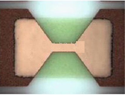 然而,還必須嚴格控制熔體的幾何形狀,才能控制貼片式保險絲的額定電流。使用照相印刷工藝的熔體從結(jié)構(gòu)上保證了能夠產(chǎn)生精確的幾何輪廓,把端子間未用的導電材料溶解掉。通過照相印刷工藝,可控制熔體的長度和寬度,達到與濺射薄膜層厚度相同的準確度和精度。
