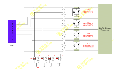 TVS ARRAY RJ45 以態(tài)網(wǎng)接口上的應用如下: