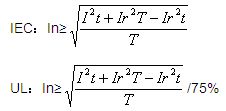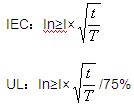 如果保險絲通以一定的電流(Ix)可以永久工作,那么此時保險絲的聚熱與散熱一定處于平衡狀態,此時保險絲的散熱功率為Ix2T。如果尖峰電流產生的能量≤Ix2T,可以認為尖峰電流產生的能量不可能使保險絲的溫升大于Ix時的溫升。對于滿足不同的安規體系,Ix的數值有所區別,IEC體系下可以認為等于In;UL體系下可以認為等于75%In。