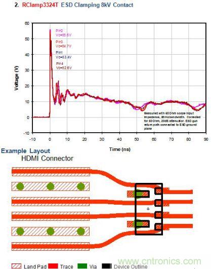 圖2:低的ESD鉗位電壓應用分析一