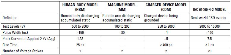 器件級模型和系統級模型有一些明顯的區別,表 2 列出了這些區別。表 2 中最后三個參數(電流、上升時間和電擊次數)需特別注意: