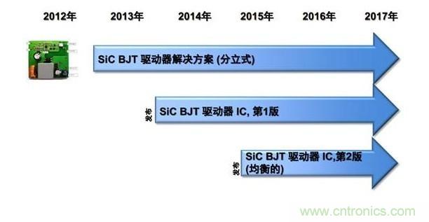 飛兆針對SiC BJT產(chǎn)品已經(jīng)有了一個完整的產(chǎn)品路線圖。現(xiàn)在飛兆SiC BJT解決方案驅(qū)動部分還是分立式的,下一步我們首先開發(fā)SiC BJT驅(qū)動IC。SiC BJT驅(qū)動器和其他以往同類器件有很大的不同,由于通過電流很大需要特需驅(qū)動IC,所以飛兆有必要開發(fā)出專屬IC,防止EMC干擾。” 藍(lán)建銅說。