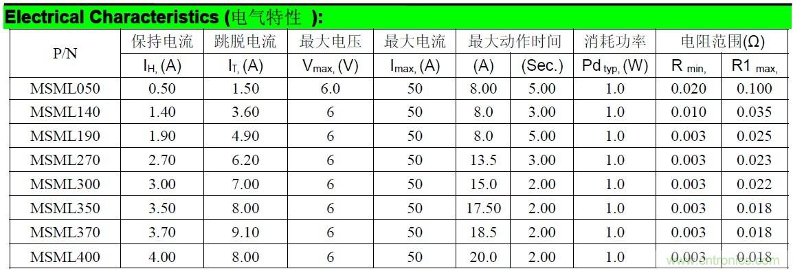 具有廣泛應用范圍的自恢復保險絲系列產品