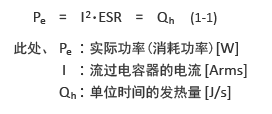 交流電流通過此類電容器時(shí),會(huì)因電容器的電阻成分(ESR),產(chǎn)生式.1-1中所示的功率消耗Pe,則電容器發(fā)熱。