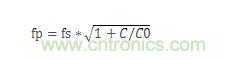 當頻率繼續提高,高于fs時,LCR支路呈感性,這樣和C0產生并聯諧振,并聯諧振頻率fp,其計算公式為:
