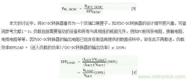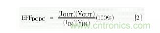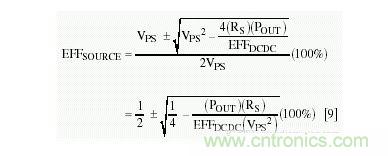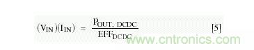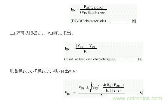 現在,我們有了足夠的信息來計算電源自身的耗散功率及其效率。因為電源電壓的開路值(VPS)已經給出,我們僅需找出DC-DC轉換器的輸入電壓(VIN)。從等式[5]解出IIN: