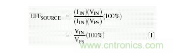計算和測量電源效率非常簡單。EFFSOURCE = (送入調節器的功率)/(VPS輸出功率) x 100%: