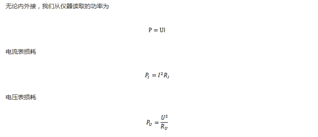 對于功率測量儀器,我們希望電壓通道輸入阻抗無窮大,電流通道輸入阻抗無窮小。然而現實跟理想總有那么一點差距,電壓表和電流表的輸入阻抗消耗了測量回路中電能,產生了系統誤差,對測量精度的影響跟測量方法有關。