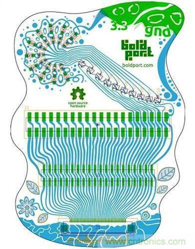 以下是許多有如藝術(shù)品的電路板設(shè)計,對于這些創(chuàng)作者,筆者忍不住要贊賞他們的努力成果;當你在做電路板繞線設(shè)計時,你可以維持傳統(tǒng)做法使用枯燥簡潔的線條,但加入一些變化與美學(xué)的繞線形式在功能上并不會打折扣;看看這些作品,難道你不覺得它們看起來是如此生機勃勃,比純粹講究實用主義的四方形綠色塑料板更有“人性”?
