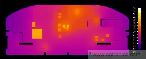 圖 4:設(shè)計(jì)期間的 CFD 結(jié)果與利用紅外攝像機(jī)測(cè)量的實(shí)際 PCB 的對(duì)比