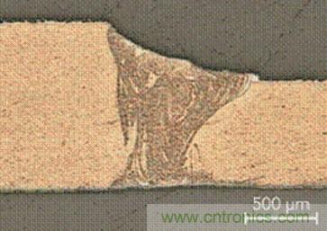 為了防腐蝕,大多數(shù)的熱成型材料都有鋁硅涂層。而在激光焊接過程中,鋁硅涂層將在焊縫中形成FeAl合金金相(如圖1所示),從而導(dǎo)致激光焊縫無法通過抗拉強度測試。因而,在激光焊接前必須去除鋁硅涂層。