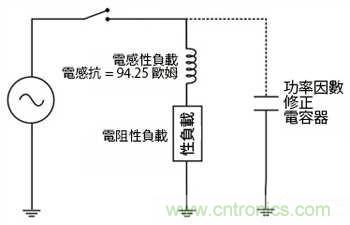 功率因數修正的目標為將電壓與電流之間的相位差降至最低。電容抗可用于將電感抗帶回系統僅有的電阻相位中。只需要有正確特質的電容器,亦即有夠高的功率比率以及與電感抗有180度的反相(圖1)。