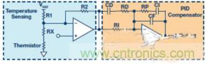 圖8.使用ADN8834內部兩個斬波放大器的熱反饋環路圖