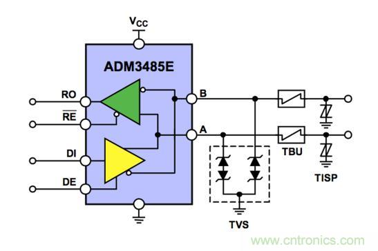 RS-485端口EMC方案相應的規范要求實際上就是保護電路設計需要達到的目標。為了達成這樣的目標,自有其設計原則:
